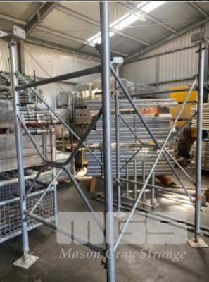 10 X V FRAME GALVANISED STEEL FORMWORK SCAFFOLD SHORING KITS, EACH COMPRISING: 20 FRAMES @ 2100mm 40 X FLAT JACK BASES, SCREW ADJUSTABLE, 600mm 40 X U-HEAD TOPS SCREW ADJUSTABLE, 600mm 20 X BRACES @ 1500mm ASSEMBLED SIZE 1200X1500/1800X 2100mm