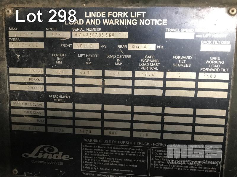 2004 LINDE H18T-03 1.8 TONNE FORKLIFT VIN: H2X350R03560 LPG, RED, (NO PAPERS, NO OWNER'S MANUAL, NO SERVICE BOOKS)