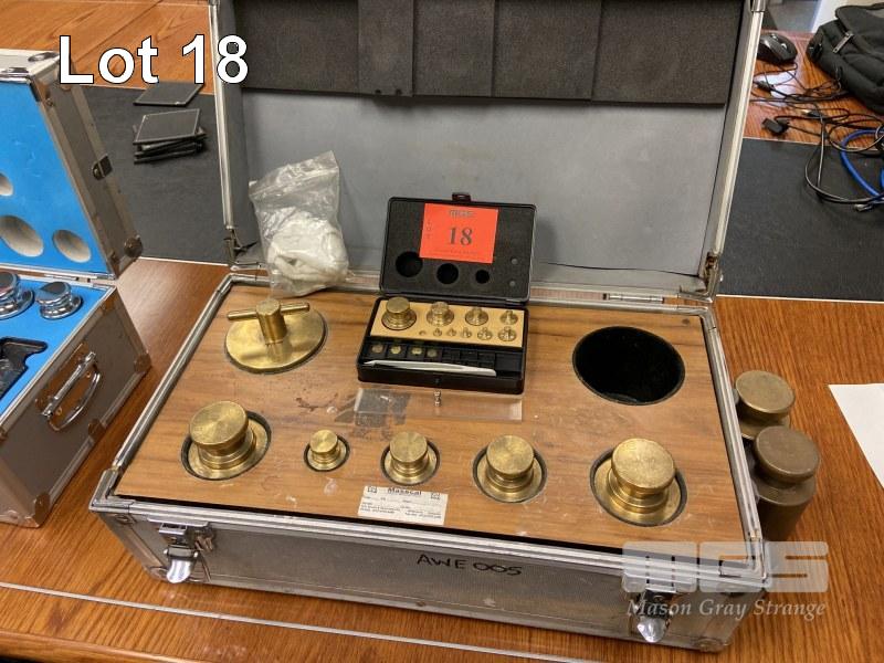 KNOWN WEIGHT SET - OLDER BRASS SET 100mg, 200mg, 500mg 2gm, 5gm, 10gm, 20gm, 50gm, 100gm, 200gm & 500gm PLUS 2kg & 5kg IN CASE
