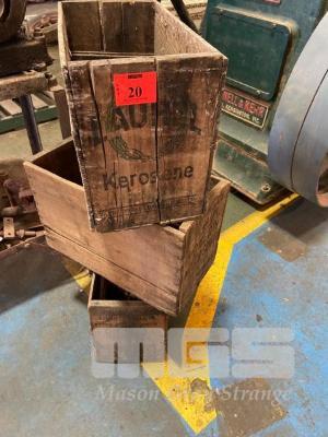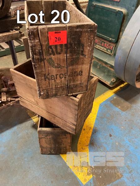 3 x WOODEN MOTOR SPIRIT CRATES LAUREL, BRITISH IMPERIAL, SHELL