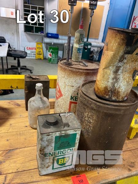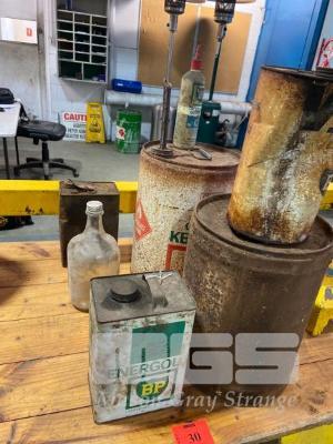 6 x MIXED SIZE OIL CANS/DRUMS, BP