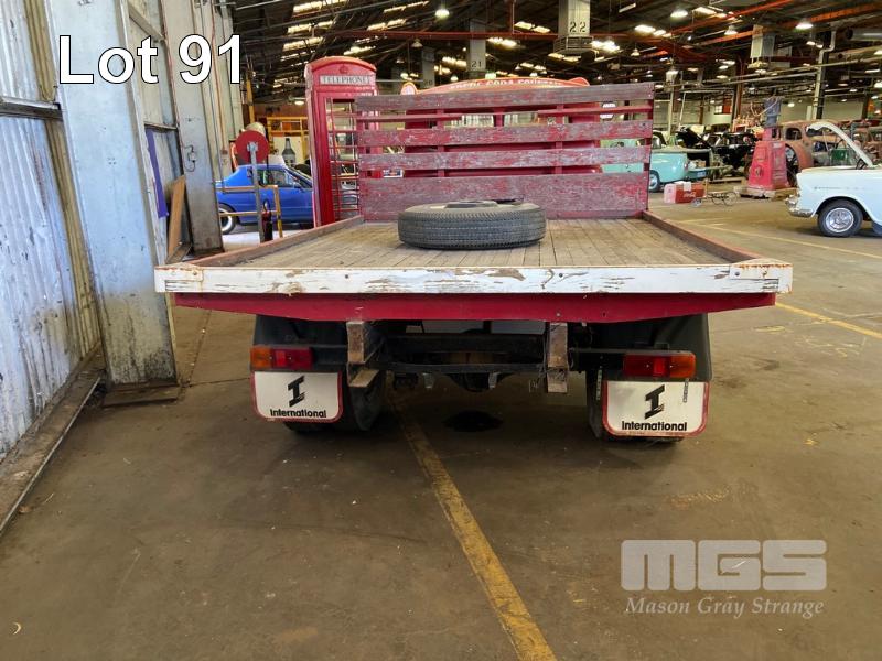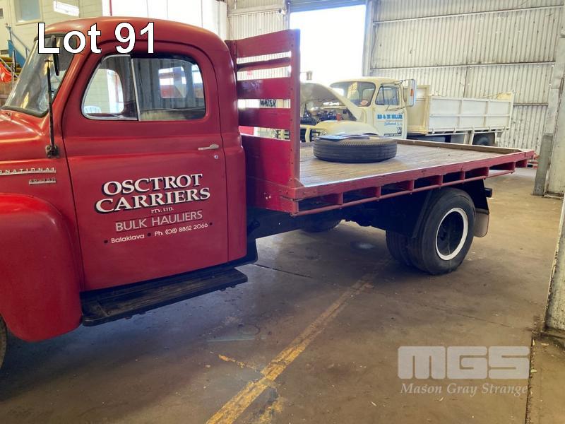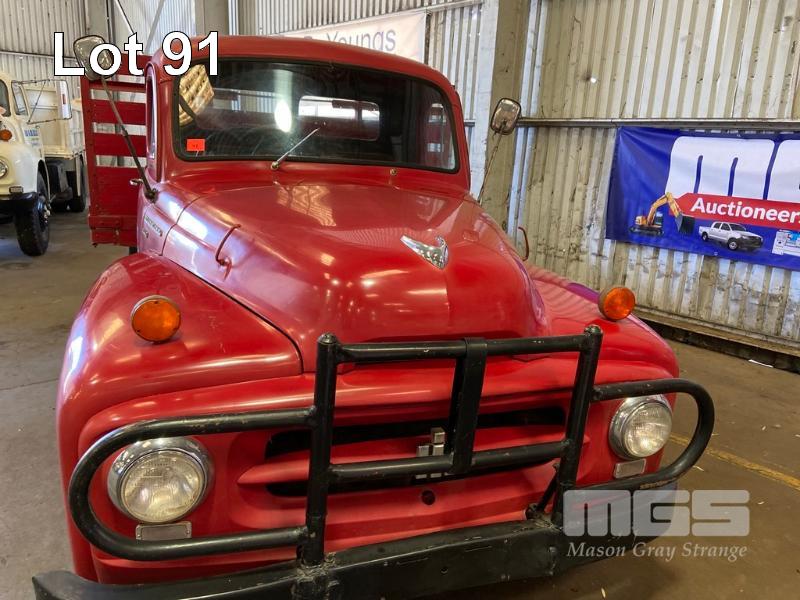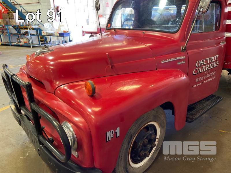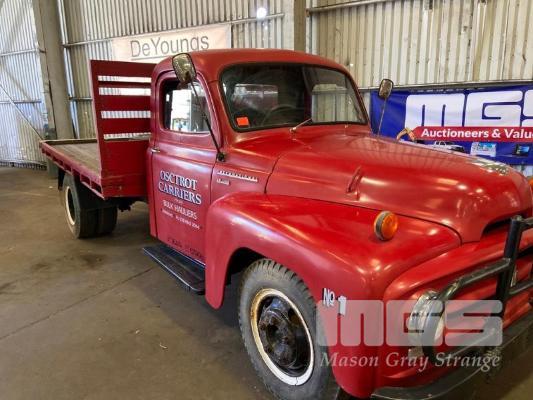 INTERNATIONAL TRAY TOP TRUCK CIRCA 1954 MOD: AR-148 WB154 CHASSIS No: 638 6 CYLINDER PETROL ENGINE, MANUAL GEARBOX ODO: 7209miles SHOWING TIMBER TRAY 10 x 7'7 FT GOOD BODY & CHASSIS RUNNING UNIT, KEY.