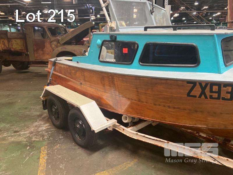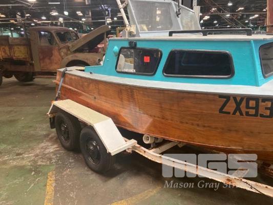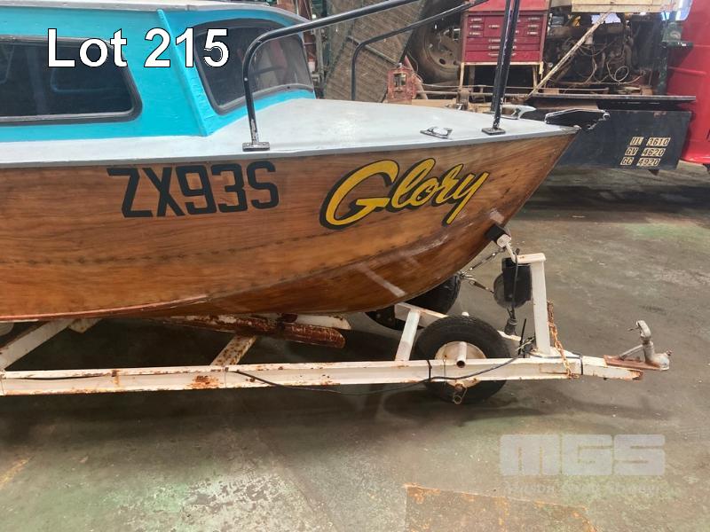 "GLORY" PLYWOOD FISHING BOAT, 15' APPROX ON DUAL AXLE TRAILER REG: TKR 237 A PROJECT!