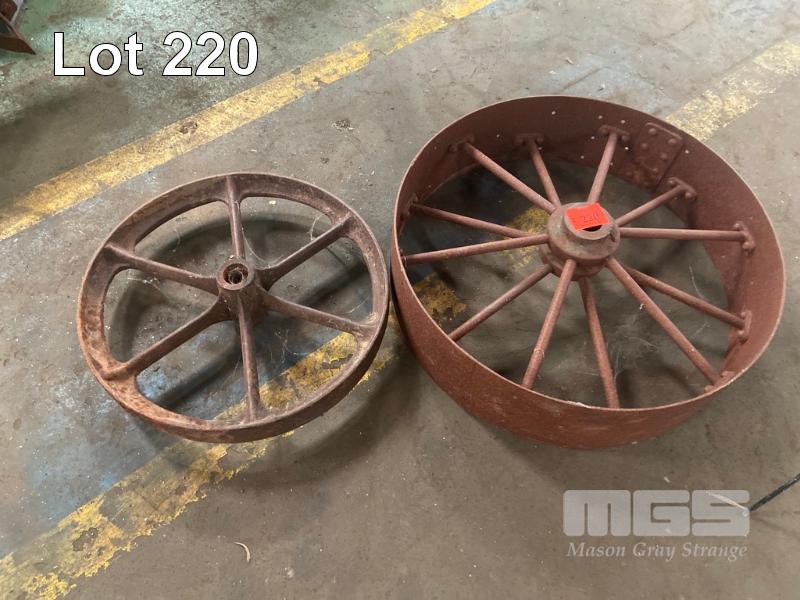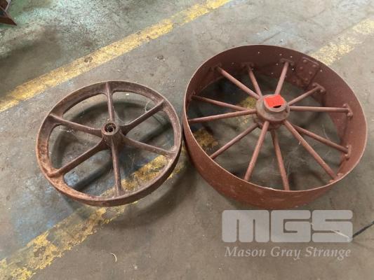 2 x STEEL EARLY TRACTOR WHEELS, 600 & 800mm DIAMETER