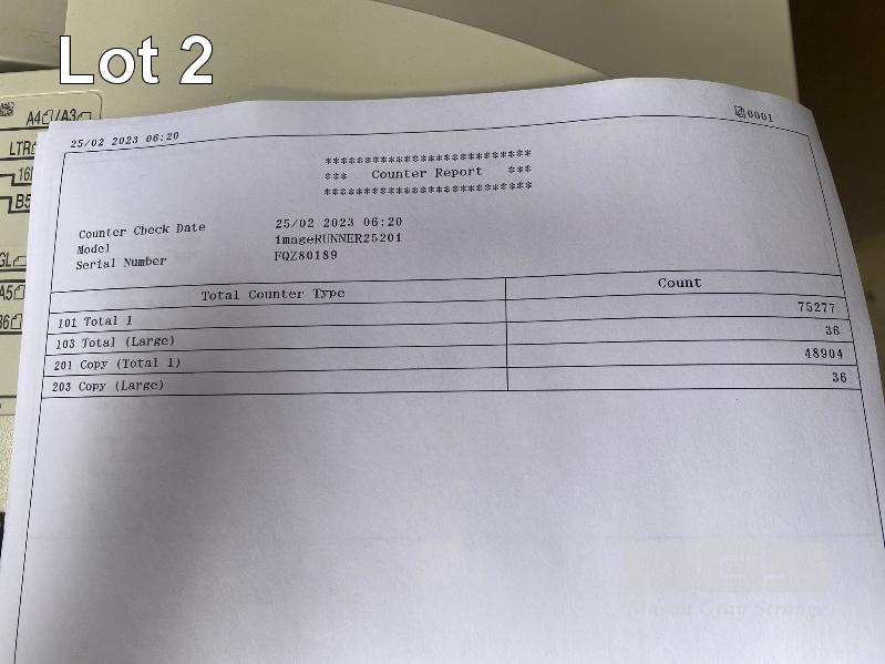 PHOTOCOPIER, CANON imageRUNNER 2520i DIGITAL, ADF, PRINTER USB & NETWORK PORTS, FAX, 75,277 COPIES SHOWING (TEST PAGE ATTACHED) S/N:FQZ80189