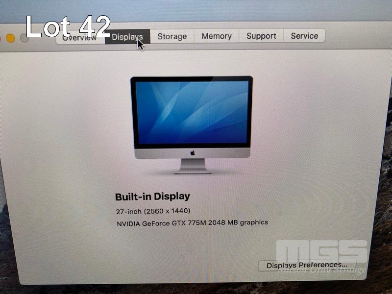 APPLE iMAC (A1419), CORE i5 4670 (4TH GEN) @ 3.4GHz, 24GB DDR3 RAM, 1TB SATA HDD, BUILT-IN 27" DISPLAY (2560x1440), 2GB NVIDIA GEFORCE GTX 776M VIDEO, Wi-Fi, MAC OS 10.13 INSTALLED (NO KEYBOARD, NO MOUSE) S/N:C02N10CGF8JC