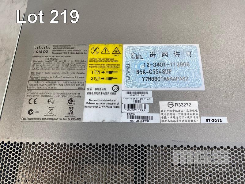 CISCO NEXUS 5548UP 32-PORT 1/10Gb SFP+ NETWORK SWITCH, N5K-C5548UP V01, 2 x PSU WITH N55-M16UP MODULE (NO CABLES) S/N:SSI162104DL
