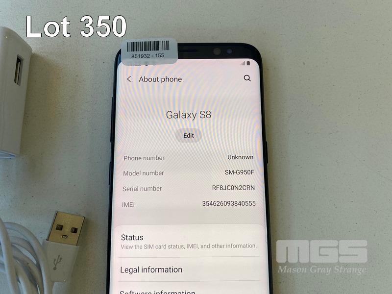 SAMSUNG GALAXY S8 SMARTPHONE, MODEL SM-G950F, 64GB WITH USB-C CHARGER (NOTE: SMALL SCRATCHES ON SCREEN) S/N:RF8JC0N2CRN