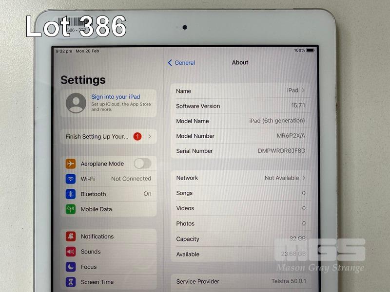 APPLE iPAD (6TH GEN), 32GB, Wi-Fi, CELLULAR, SILVER, MODEL A1954 (NO CABLE, NO CHARGER) (NOTE: SCRATCHES ON CASING) S/N:DMPWRDR0JF8D