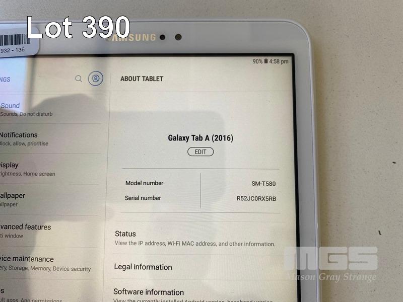 TABLET PC, SAMSUNG GALAXY TAB A, MODEL SM-T580, 16GB, Wi-Fi, 10.1" SCREEN WITH CABLE & CHARGER S/N:R52JC0RX5RB