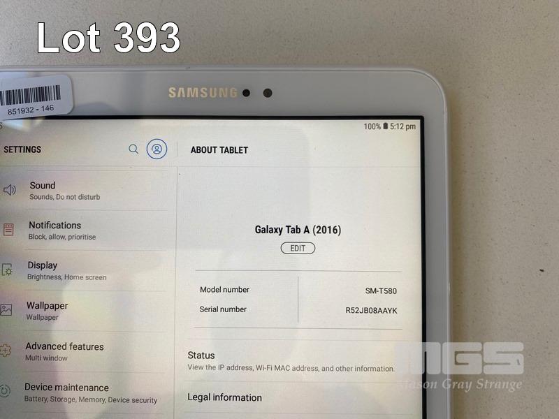 TABLET PC, SAMSUNG GALAXY TAB A, MODEL SM-T580, 16GB, Wi-Fi, 10.1" SCREEN WITH CABLE & CHARGER S/N:R52JB08AAYK