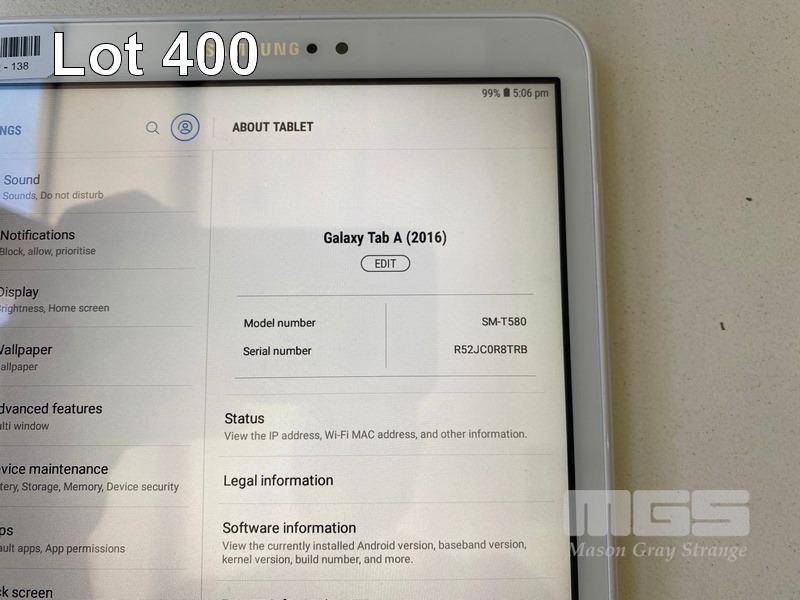 TABLET PC, SAMSUNG GALAXY TAB A, MODEL SM-T580, 16GB, Wi-Fi, 10.1" SCREEN WITH CABLE & CHARGER S/N:R52JC0R8TRB
