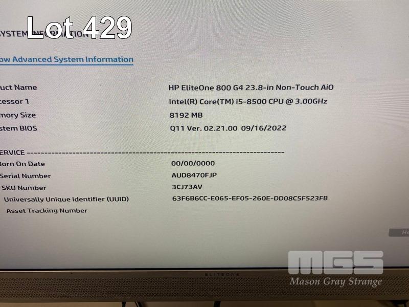 ALL-IN-ONE PC, HP ELITEONE 800 G4 (3CJ73AV), CORE i5 8500 (8TH GEN) @ 3GHz, 8GB DDR4 RAM, 256GB NVMe M.2 SSD, INBUILT 23.8" WIDESCREEN (1920x1080), INTEL UHD GRAPHICS, Wi-Fi, 6 x USB, 1 x USB-C, WINDOWS 11 PRO INSTALLED, KEYBOARD & MOUSE (NOTE: SCRATCHES & BRIGHT SPOT ON SCREEN) S/N:AUD8470FJP