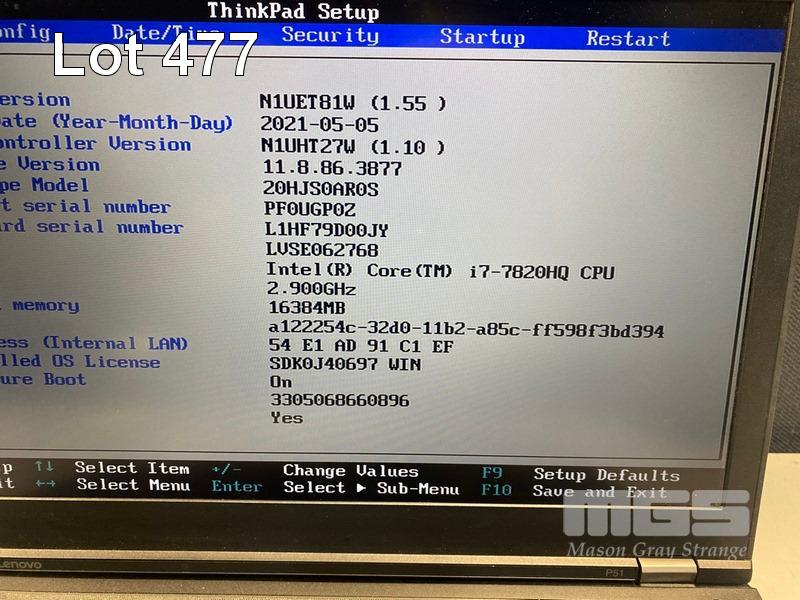 LAPTOP, LENOVO THINKPAD P51 MOBILE WORKSTATION, TYPE 20HJ, CORE i7 7820HQ (7TH GEN) @ 2.9GHz, 16GB DDR4 RAM, 500GB M.2 SSD, 15.6" WIDESCREEN (1920x1080), 4GB NVIDIA QUADRO M2200 VIDEO, Wi-Fi, BLUETOOTH, WINDOWS 10 PRO INSTALLED & POWER SUPPLY S/N:PF0UGP0Z