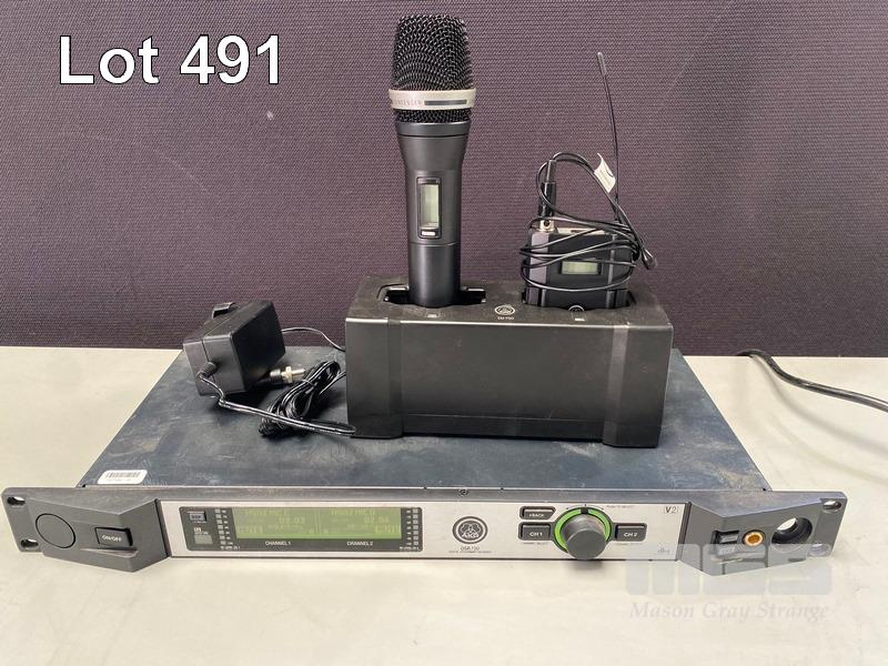 AKG DSR700 V2 DIGITAL WIRELESS STATIONARY RECEIVER (NO ANTENNAS) WITH 1 x DHT700 HANDHELD MICROPHONE, 1 x DPT700 BODYPACK TRANSMITTER, 1 x LAPEL MICROPHONE WITH CU700 CHARGING UNIT & POWER SUPPLY