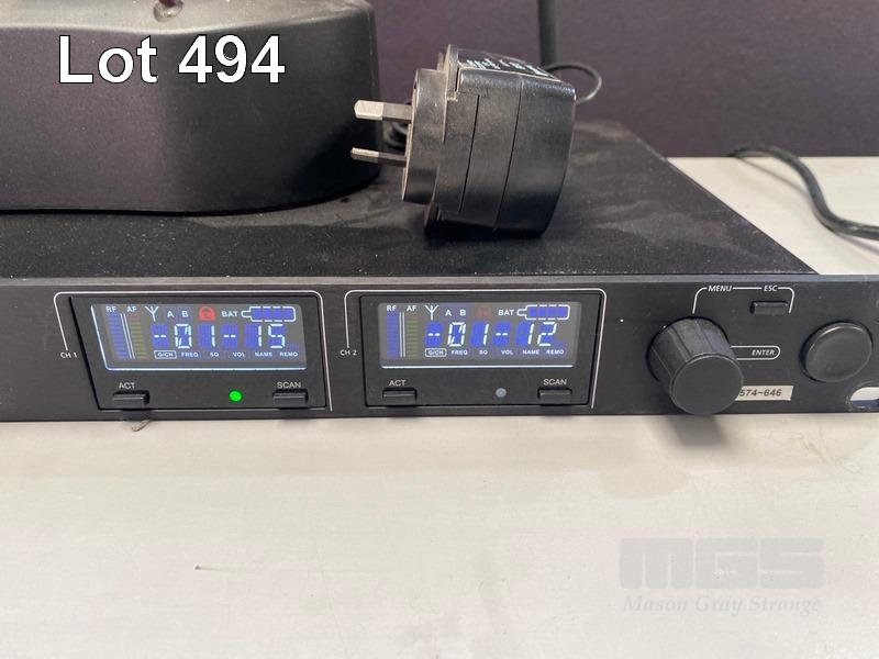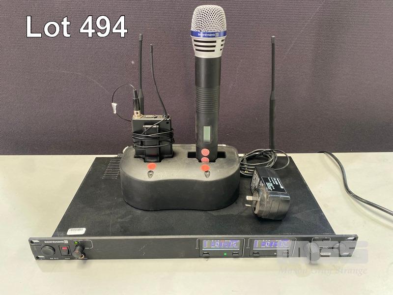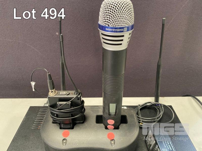 BEYERDYNAMIC NE 912 2-CHANNEL WIRELESS AUDIO RECEIVER WITH 1 x S910C HANDHELD MICROPHONE, 1 x TS910C BELTPACK TRANSMITTER, 1 x LAPEL MICROPHONE WITH CHARGING DOCK & POWER SUPPLY S/N:868326922A