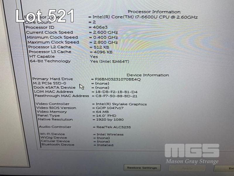 LAPTOP, DELL LATITUDE E7470, CORE i7 6600U (6TH GEN) @ 2.6GHz, 32GB DDR4 RAM, 512GB M.2 SSD, 14" WIDESCREEN (1920x1080), INTEL SKYLAKE GRAPHICS, Wi-Fi, BLUETOOTH, WINDOWS 10 HOME INSTALLED, DOCKING STATION & POWER SUPPLY S/N:63CDPF2