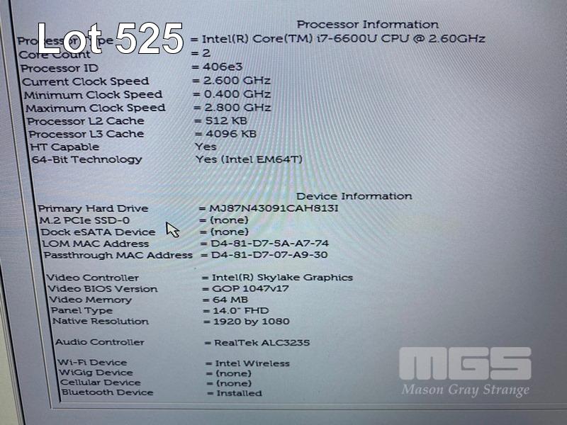 LAPTOP, DELL LATITUDE E7470, CORE i7 6600U (6TH GEN) @ 2.6GHz, 16GB DDR4 RAM, 512GB M.2 SSD, 14" WIDESCREEN (1920x1080), INTEL SKYLAKE GRAPHICS, Wi-Fi, BLUETOOTH, WINDOWS 10 HOME INSTALLED, DOCKING STATION & POWER SUPPLY S/N:G25DRF2
