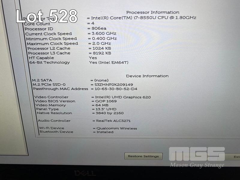 LAPTOP, DELL XPS 13 9370, CORE i7 8550U (8TH GEN) @ 1.8GHz, 16GB DDR3 RAM, 512GB NVMe M.2 SSD, 13.3" TOUCHSCREEN (3840x2160), INTEL UHD GRAPHICS 620, Wi_Fi, BLUETOOTH, WINDOWS 11 PRO INSTALLED (NO USB-C POWER SUPPLY) (NOTE: HAS FRENCH AZERTY KEYBOARD) S/N:913STN2