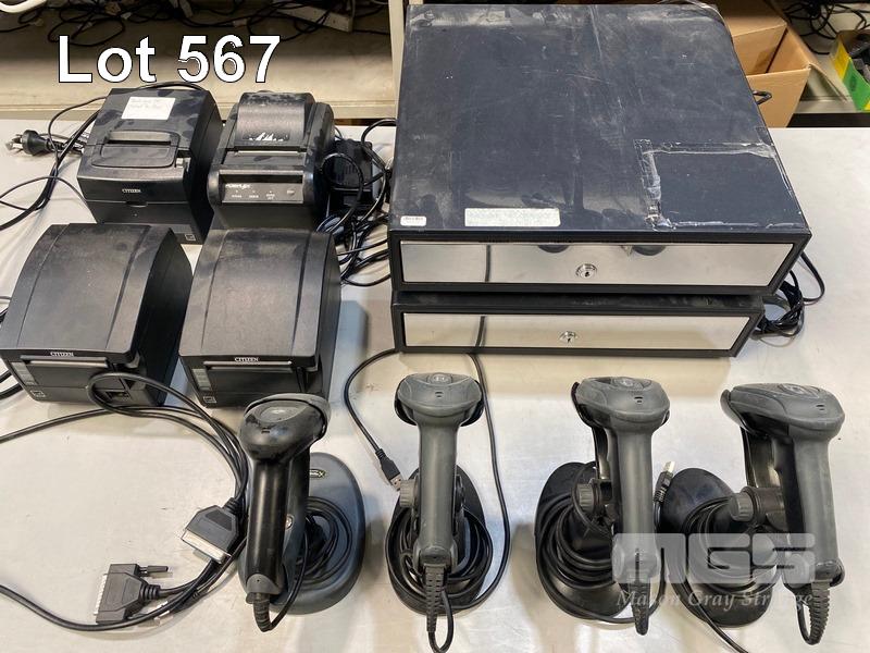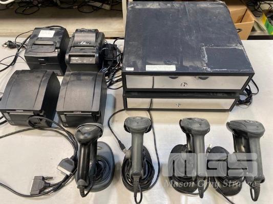 2 x POS CASH CRAWERS (NO KEYS), 4 x USB HANDHELD BARCODE SCANNERS, 4 x DOCKET PRINTERS