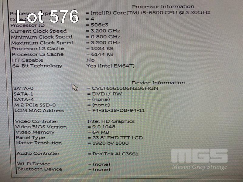 ALL-IN-ONE PC, DELL OPTIPLEX 7440, CORE i5 6500 (6TH GEN) @ 3.2GHz, 8GB DDR4 RAM, 256GB SSD, DVD-RW, INBUILT 23.8" FHD WIDESCREEN (1920x1080), INTEL HD VIDEO, WEBCAM, 8 x USB, WINDOWS 10 HOME INSTALLED, KEYBOARD & MOUSE S/N:9KF1LG2