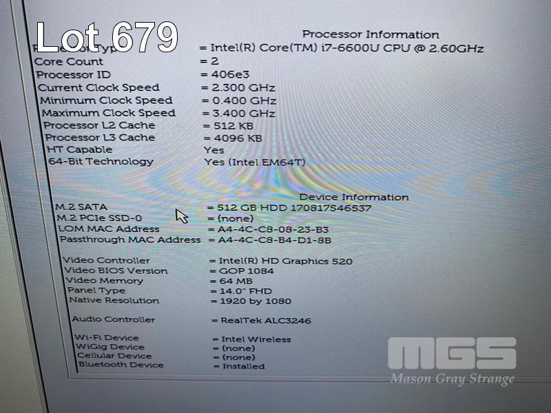 LAPTOP, DELL LATITUDE 7480, CORE i7 6600U (6TH GEN) @ 2.6GHz, 16GB DDR4 RAM, 512GB M.2 SSD, 14" WIDESCREEN (1920x1080), INTEL HD GRAPHICS 520, Wi-Fi, BLUETOOTH, WINDOWS 10 HOME INSTALLED & POWER SUPPLY (NOTE: NO BATTERY, KEYBOARD FAULT) S/N:FB9X7H2