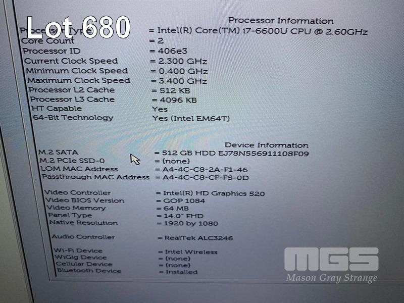 LAPTOP, DELL LATITUDE 7480, CORE i7 6600U (6TH GEN) @ 2.6GHz, 16GB DDR4 RAM, 512GB M.2 SSD, 14" WIDESCREEN (1920x1080), INTEL HD GRAPHICS 520, Wi-Fi, BLUETOOTH, WINDOWS 10 HOME INSTALLED & POWER SUPPLY (NOTE: NO BATTERY, MESSAGE ON STARTUP "TPM DEVICE IS NOT DETECTED") S/N:J7ZQBH2