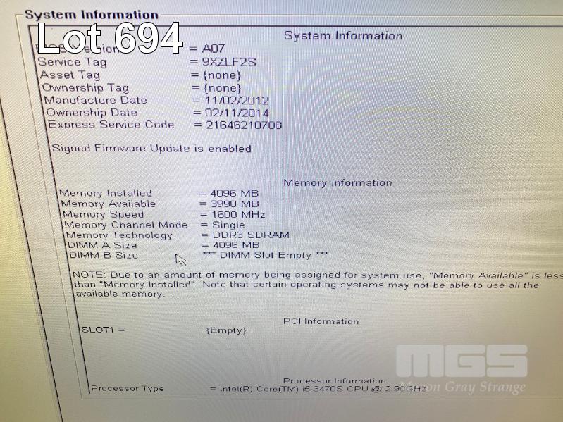 3 x ALL-IN-ONE COMPUTERS INC. - DELL OPTIPLEX 9010, CORE i5 3470S @ 2.9GHz, 4GB RAM, 500GB HDD (NO CABLES) S/N:5XZLF2S, 8XLF2S, 9XZLF2S