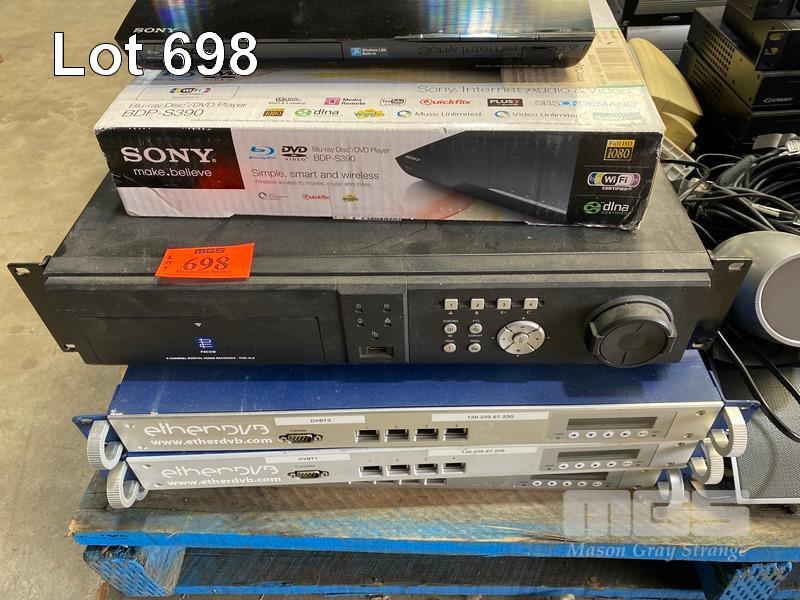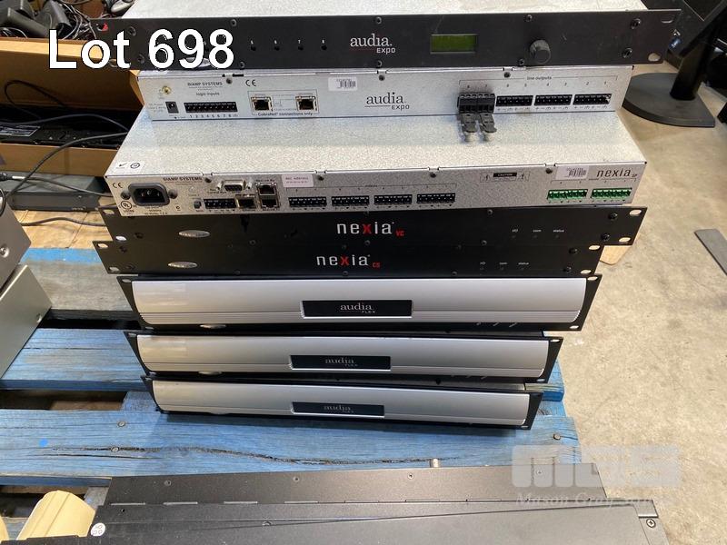 PALLET LOT ASST AV INCLUDING SPEAKERS, BLU-RAY PLAYER, NVR, POLYCOM, SERVERLINK, NEXIA, AUDIA FLEX, ETC