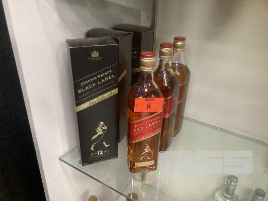 3 x BOTTLES JOHNNIE WALKER BLACK LABEL & 3 x BOTTLES JOHNNIE WALKER RED LABEL, 700ml