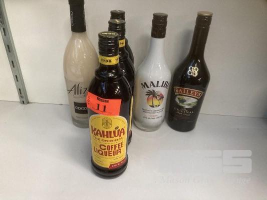 3 x BOTTLES KAHLUA, 1 x BOTTLE BAILEYS, 1 x BOTTLE MALIBU & 1 x BOTTLE ALIZE, 700ml