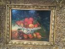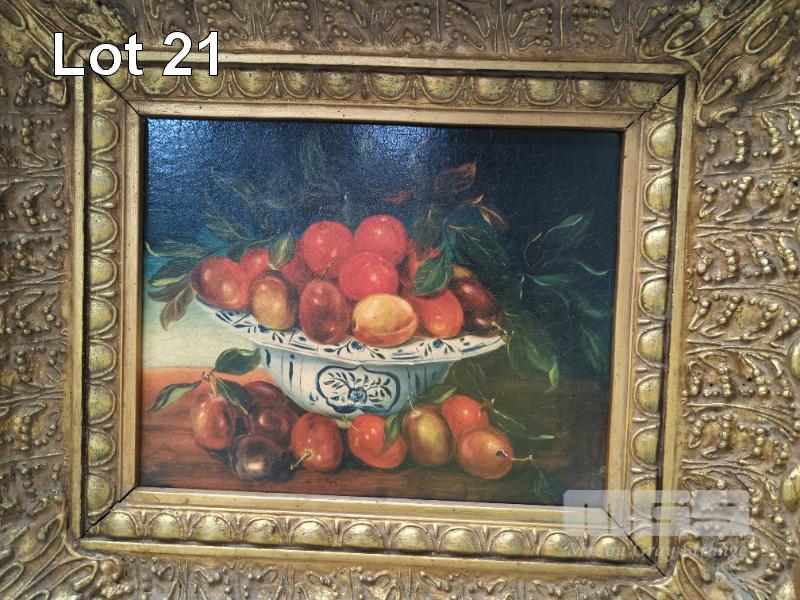 STILL LIFE FRUIT PRINT TITLED RED PLUM IN CHINA BOWL