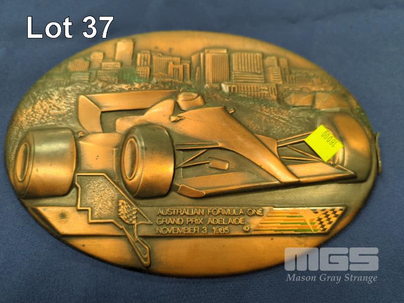 AUSTRALIAN FORMULA 1 GP COPPER EMBOSSED WALL HANGING, 1985