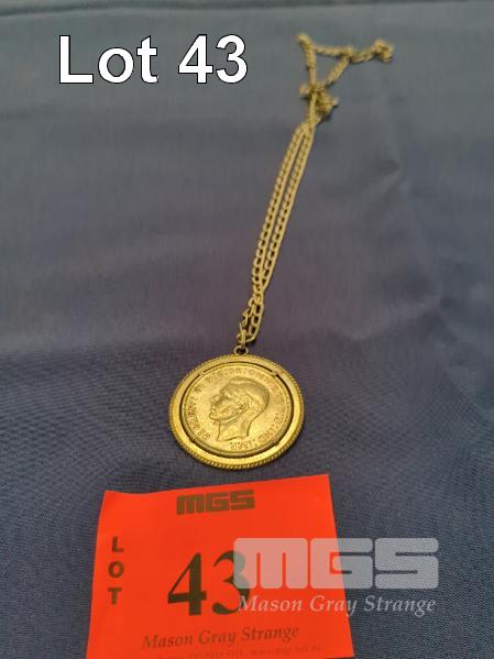 1937 AUSTRALIAN CROWN SET IN SILVER PENDANT & CHAIN MARKED 835