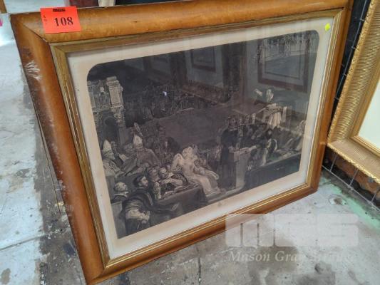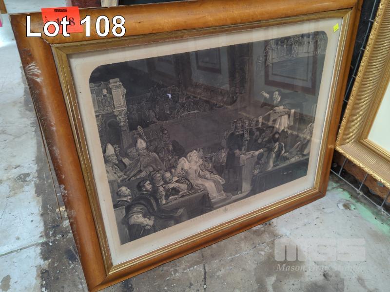 FRAMED LITHOGRAPH PRINT THE PREACHING OF JOHN KNOX