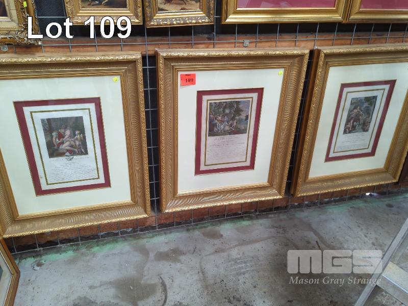 SET OF 3 GILT FRAMED FRENCH ARTWORKS "ECOLE GENOISE" "ECOLE VENITIENNE" & "ECOLE VENITIENNE"