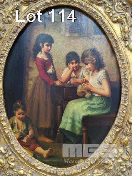 DECORATIVE GILT FRAME OIL ON BOARD, 4 x CHILDREN