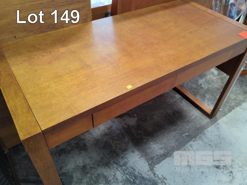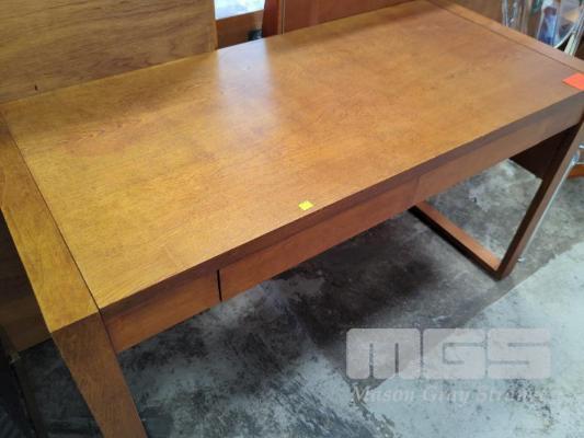 OAK STAINED 2 DRAWER OFFICE DESK WITH BLACK FABRIC GAS LIFT CHAIR