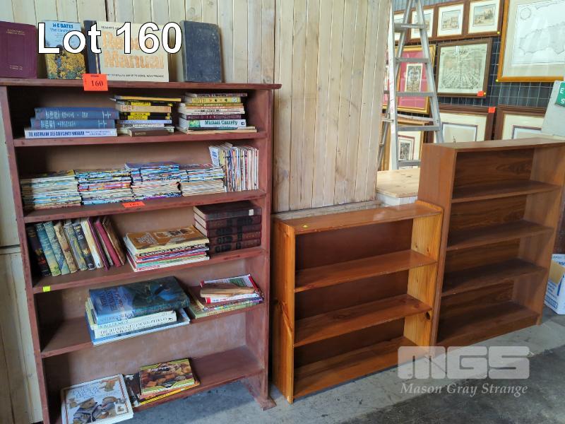 3 x LOWLINE BOOKCASES, 1 x 5 TIER, 1 x 4 TIER & 1 x 3 TIER