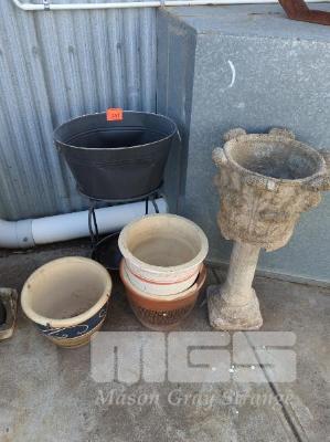 GLAZED CERAMIC POTS, DECORATIVE CONCRETE POT ON PEDESTAL & ICE BUCKET ON STAND