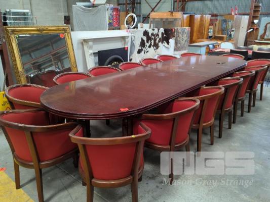 LARGE BOARDROOM TABLE & 16 x TUB CHAIRS