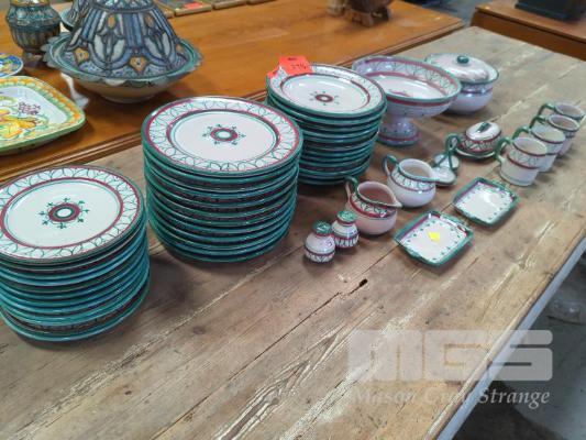 DINNER SERVICES, PLATES, LIDDED DISHES, JUGS, MUGS, BUTTER DISHES, CONDIMENT HOLDER, ETC