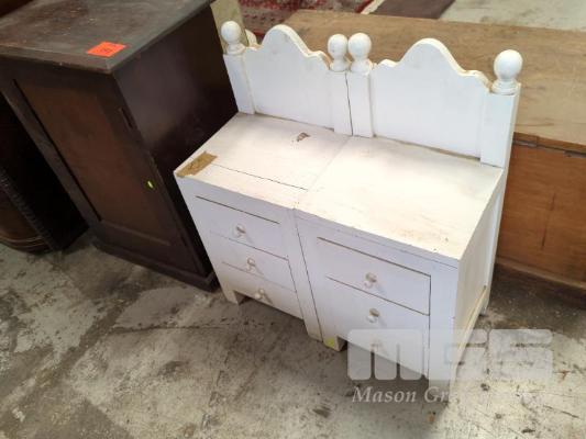 PAIR WHITE PAINTED 3 DRAWER BEDSIDE CABINET & ANTIQUE SINGLE DOOR CABINET