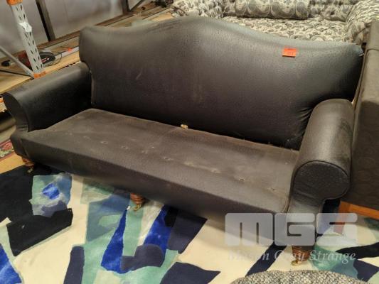 BLACK LEATHER UPHOLSTERED ROLL ARM 3 SEATER SOFA