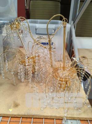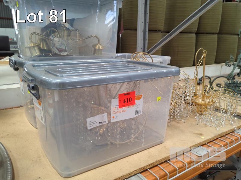 4 x PLASTIC TUBS & CONTENTS CRYSTAL CHANDELIERS, & OTHER LIGHT FITTINGS