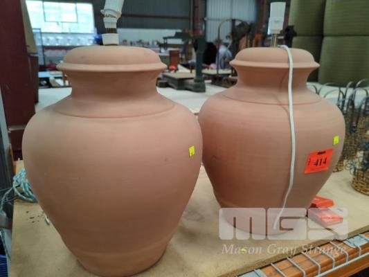 PAIR TERRACOTTA TABLE LAMPS, NO SHADES