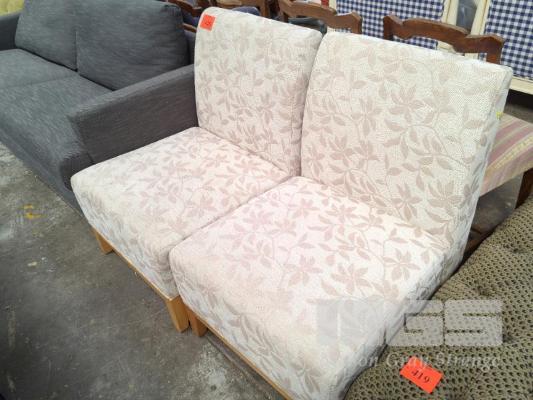 PAIR BEIGE FABRIC UPHOLSTERED OCCASIONAL CHAIRS