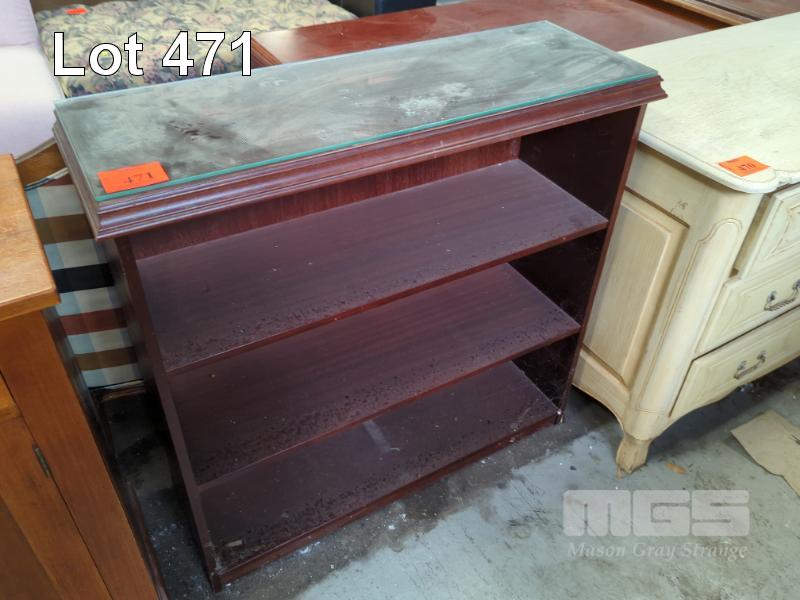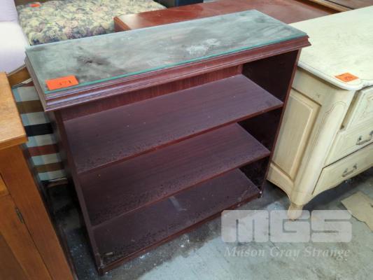 MAHOGANY STAINED 3 TIER LOWLINE BOOKCASE