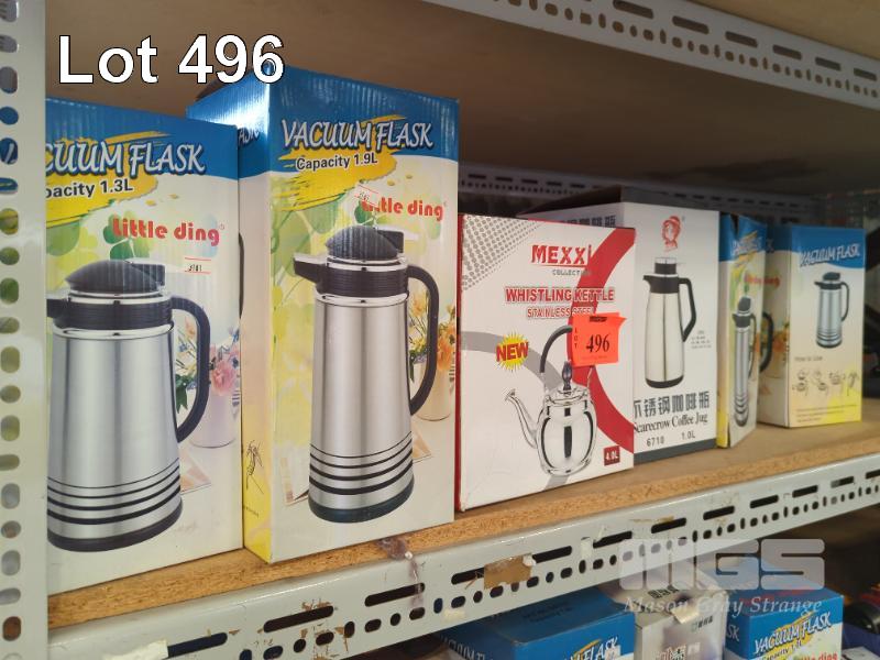 5 x VACUUM FLASKS & WHISTLING KETTLE