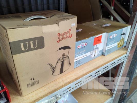 3 x WHISTLING KETTLES, 2 @ 4 LITRE & 1 @ 7 LITRE